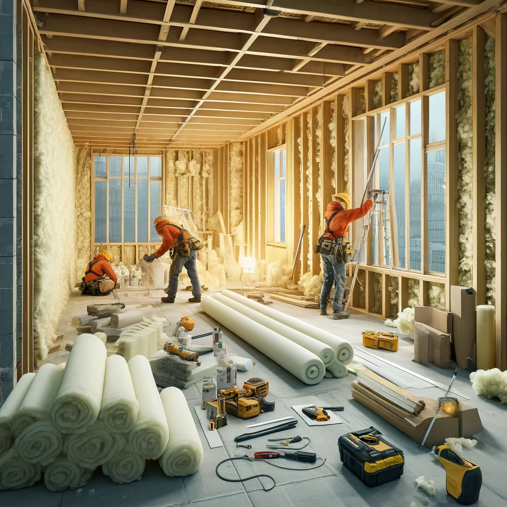 Les travaux d'isolation visent à améliorer l'efficacité énergétique d'un bâtiment en réduisant les pertes de chaleur en hiver et la chaleur entrante en été. Cela inclut l'installation de matériaux isolants dans les murs, les toits et les planchers.